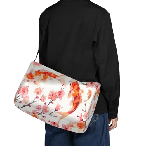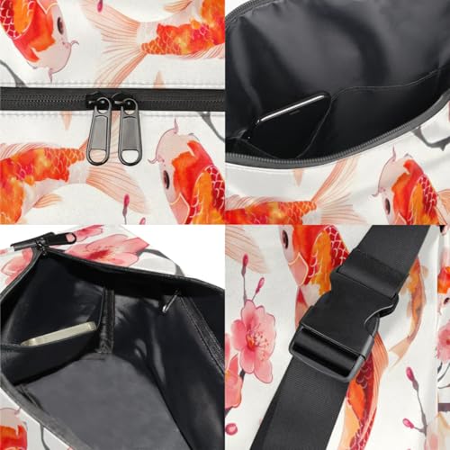 HOT ! Leather Travel Duffle Bag for Women Men, Watercolor Koi Fish Cherry Blossoms Small Sports Gym Bag Weekender Overnight Bags Underseat Carry on Luggage Bags for Airplanes,A-828