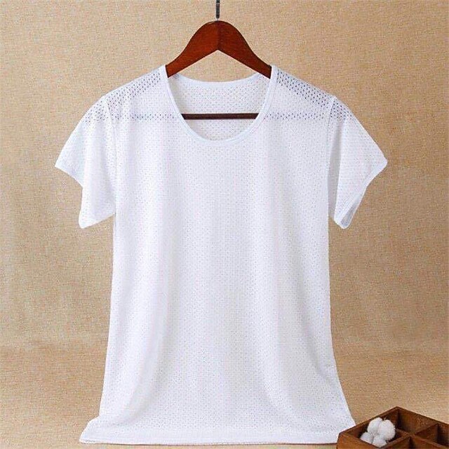 HOT ! Men's T Shirt Moisture Wicking Shirts Short Sleeve Crew Neck Summer Plain Fashion Casual Breathable Mesh Street Holiday Beach Black White Navy Blue Top Tee for Men