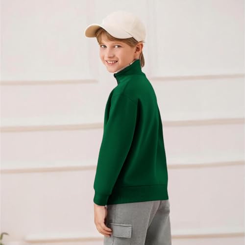 Boys Half Zipper Sweatshirts Cute Trendy Fall Pullover Tops for Youth Long Sleeve Sweater Workout School Sport Clothes Green 4