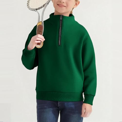 HOT ! Boys Half Zipper Sweatshirts Cute Trendy Fall Pullover Tops for Youth Long Sleeve Sweater Workout School Sport Clothes Green