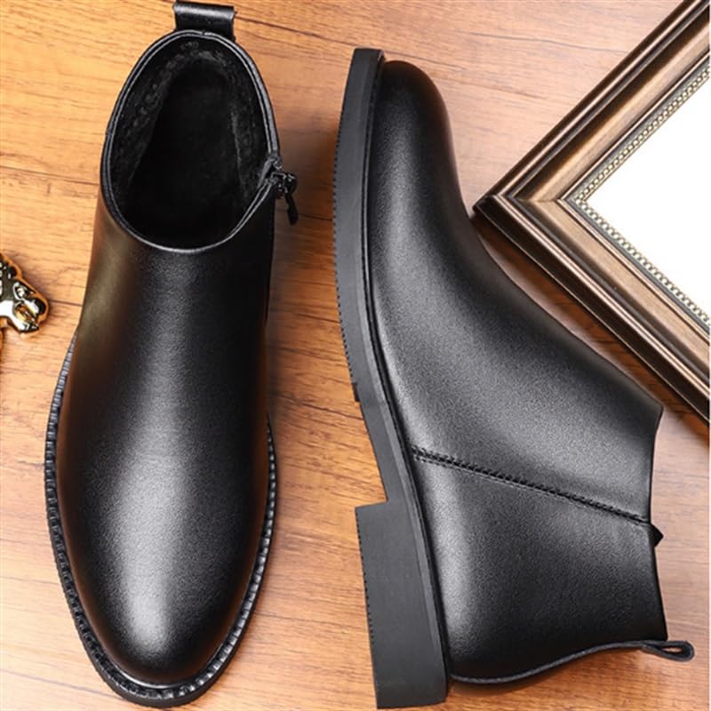 Men's Pointed Toe Leather Shoes Men Boots Side Zipper Lightweight Warm Shoes Anti-Slip Standard Size Polished Finish Business Casual Dress Shoes 6