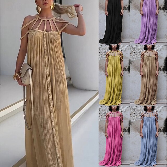 Women's Long Dress Maxi Dress Cocktail Dress Fashion Holiday Tea Party Going out Regular Fit Plain Sleeveless Crew Neck Black Yellow Blue Purple Summer 6