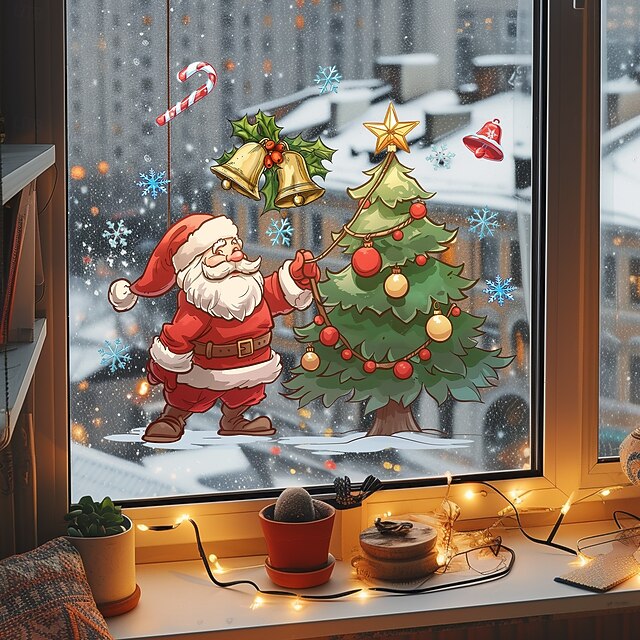 $7.49 - Christmas Sticker Wall Decals Cartoon Santa Claus Christmas Tree Snowflake Removable Vinyl Mural Holiday Party Living Room Glass Window Door Background Wall Decoration For Home 2025. Shop for cheap Sticker online? Buy at lightinthebox.com on sale today!