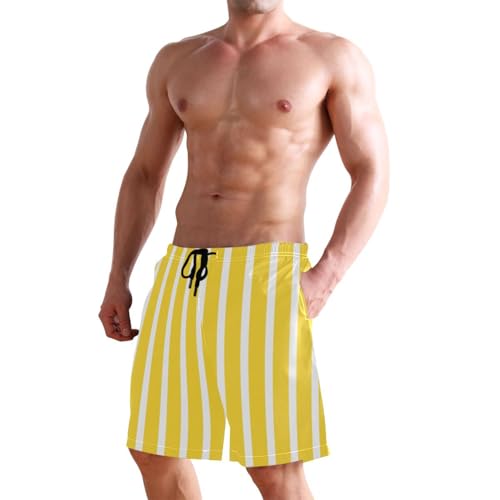Mens Swim Trunks Yellow and White Striped Quick Dry Swim Shorts Swimwears - Medium 1