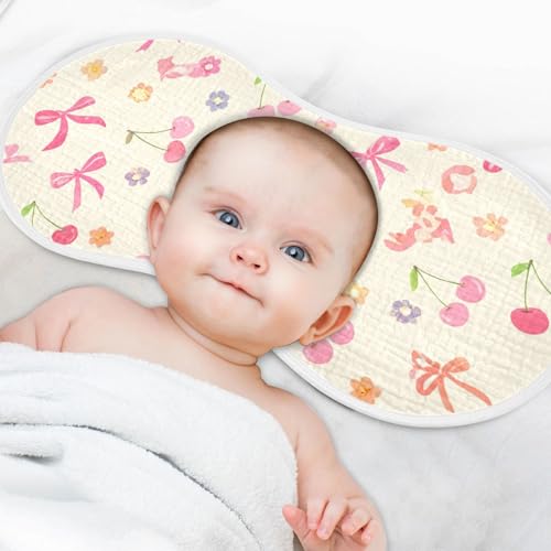 2 Pack Baby Burp Cloths, Soft Absorbent Burping Cloths for Babies, Cotton Milk Spit Up Rags, Large Size for Newborns, Baby Boys and Girls (Pink Cherry Pattern) 6