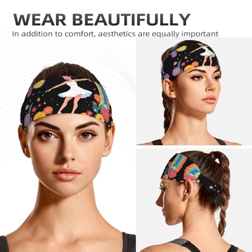 Elastic Sports Headband Hairband BROLEO Little girl dancing under the rainbow Printing Quick Drying, Moisture Wicking 5