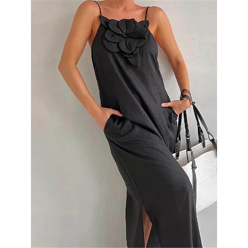 More information about Women's Black Red Apricot Summer Spring Maxi Dress Cotton Linen Dresses Casual Dress Strap Dress Basic Modern Daily Weekend Loose Fit Plain Spaghetti Strap