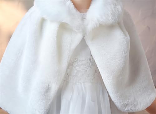 SK Studio Girls Faux Fur Wraps Shawl Girl Bolero Shrug Princess Cape Party Dress Up Jacket, White 6
