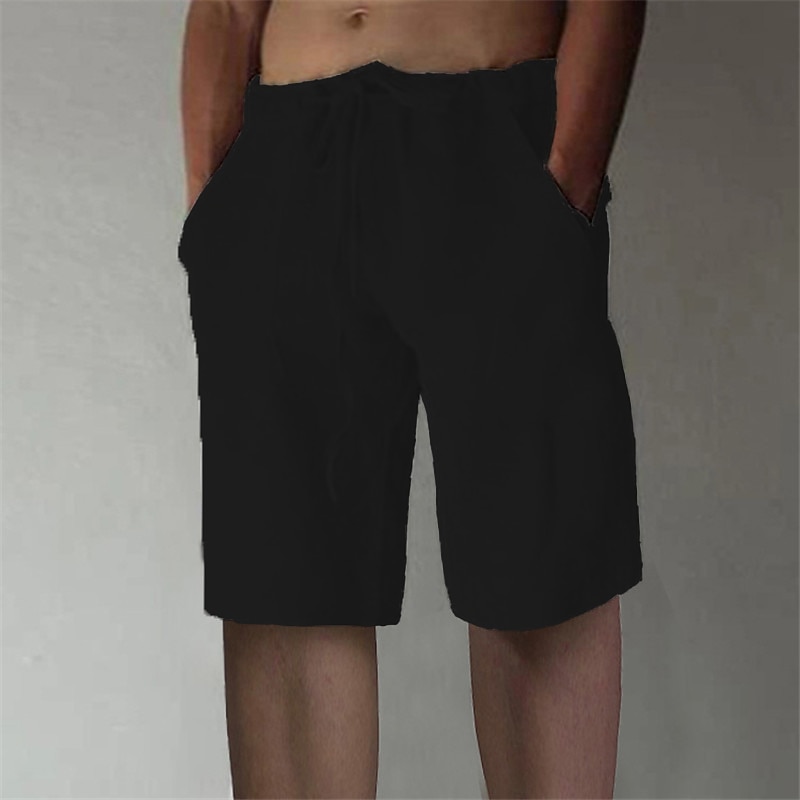 More information about Men's Linen Shorts Summer Shorts Drawstring Elastic Waist Front Pocket Plain Comfort Soft Knee Length Casual Daily Fashion Classic Style Black White