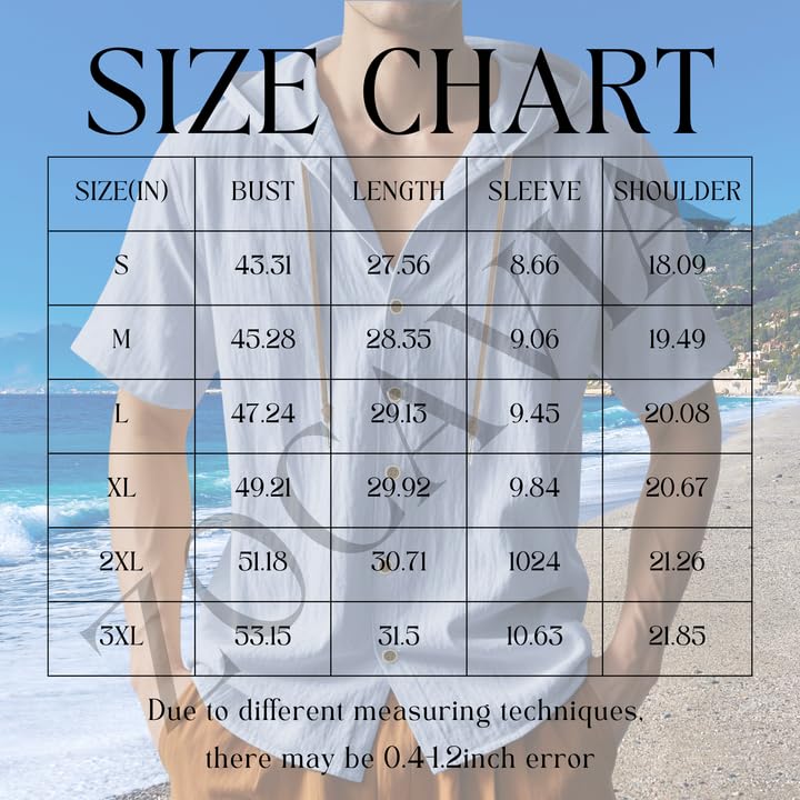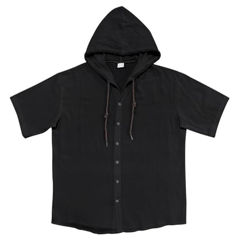HOT ! ZOCAVIA Men's Summer Linen Hoodie Casual Solid Color Short Sleeve Shirts Comfy Button Down Loose Fit Hooded Tops Light Weight