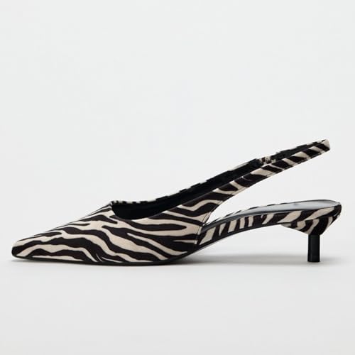 Fashion Leopard Print Slingback Pumps Shoes for Women Pointed Toe Kitten Heels 5