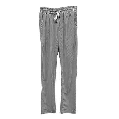Casual Pants for Men Elastic Waist Drawstring Solid Color Straight Leg Lightweight Soft Touch Basic Lounge Pants 7