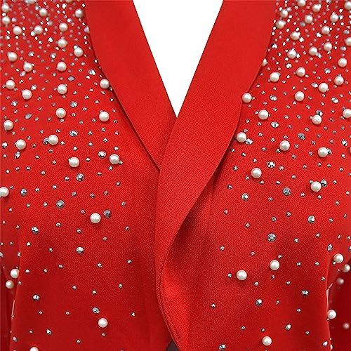 Women's Long Sleeve Lapel Pearls Rhinestones Sexy Nightclub Party Cardigan Blazer Jackets 5