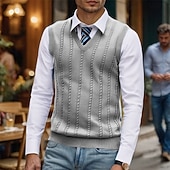 More information about Men's Sweater Vest Dress Sweater Pullover Sweater Jumper Vest Knit Sweater Ribbed Knit Regular Tops Knitted V Neck Daily Wear Date Clothing Apparel Fall Winter Blue Green S M L