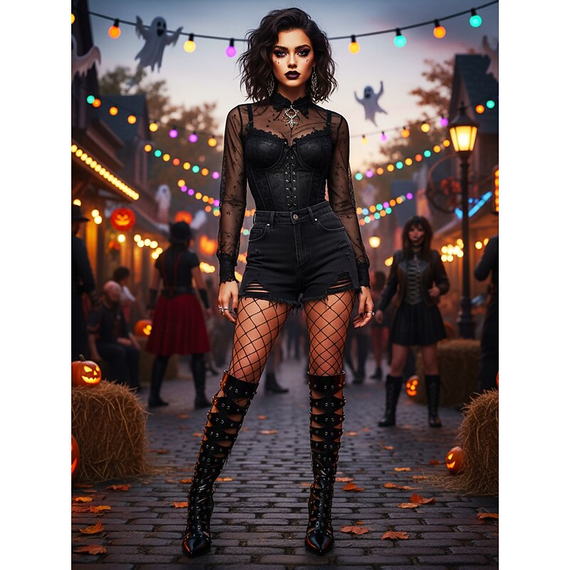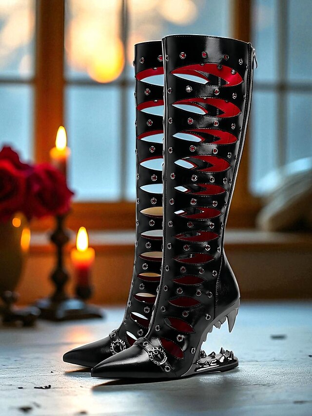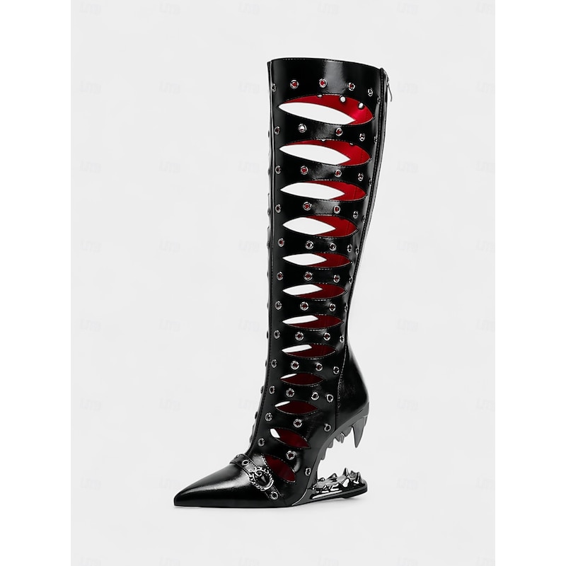 $129.99 - Women's Gothic Cutout Knee-High Heels with Spiked Sculptural Wedge - Black Punk Fetish Boots for Halloween, Cosplay and Alternative Fashion Parties 2025. Shop for cheap Shoes For Women online? Buy at lightinthebox.com on sale today!