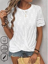 More information about Women's Blouse Elegant Modern Solid Color Eyelet Short Sleeve Crew Neck Daily White Summer
