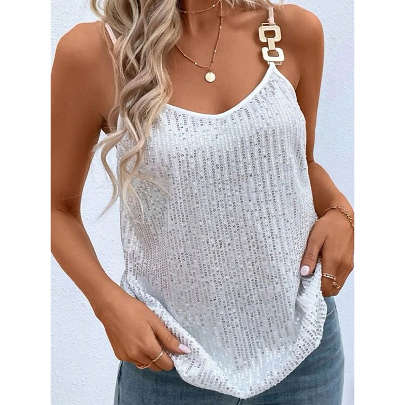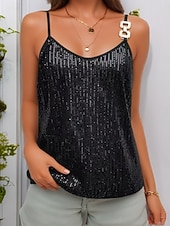 More information about Women's Camisole Tank Top Solid Color Stylish Casual Sleeveless Strap Regular Tops Daily Sequins Backless Silver Black Beige Summer