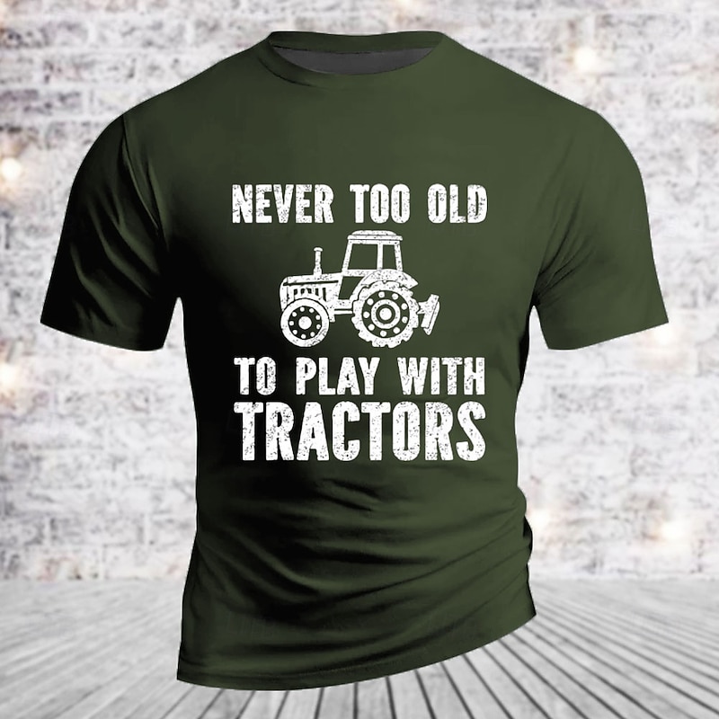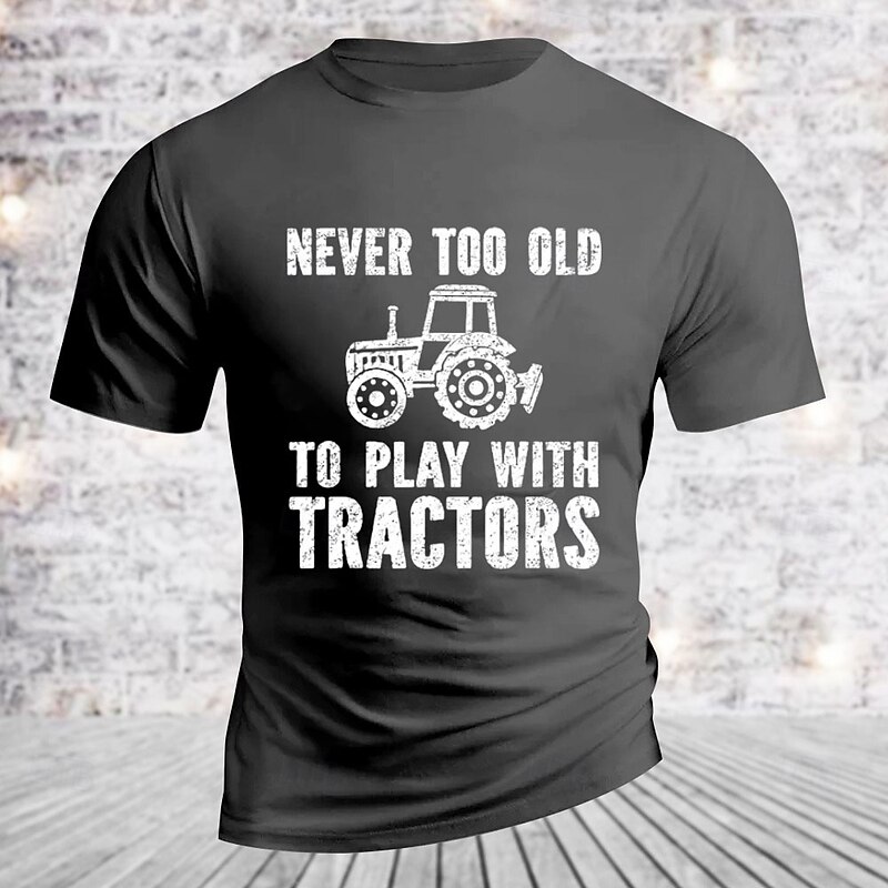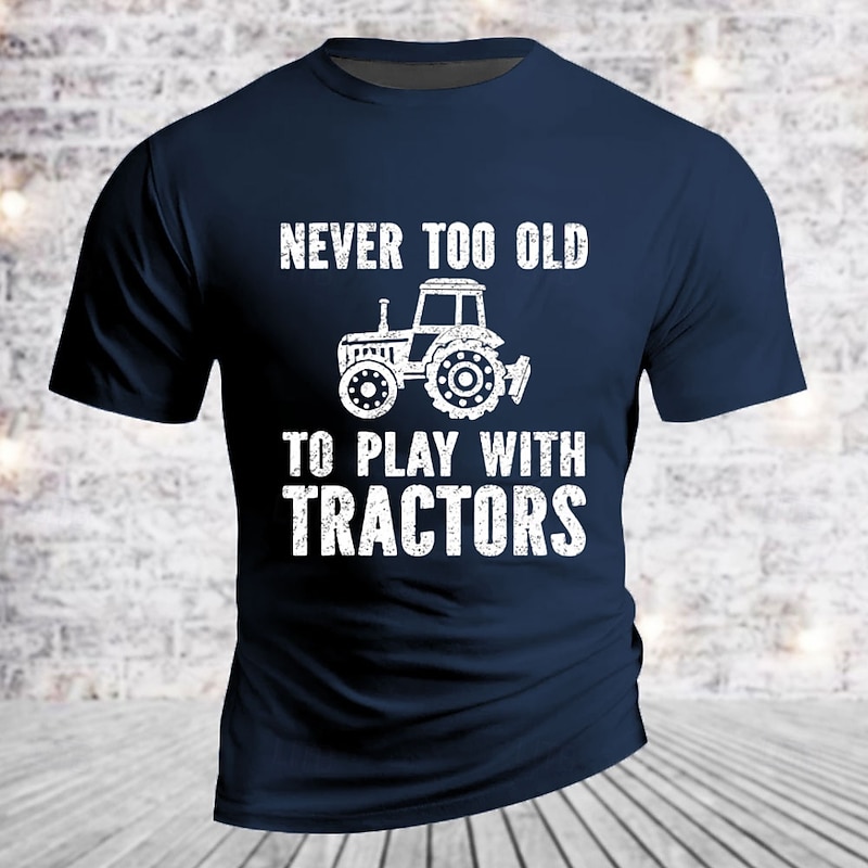 Men's Funny Tractor Graphic T-Shirt - Never Too Old To Play With Tractors Short Sleeve 12