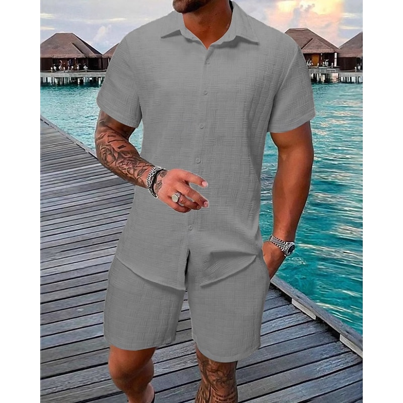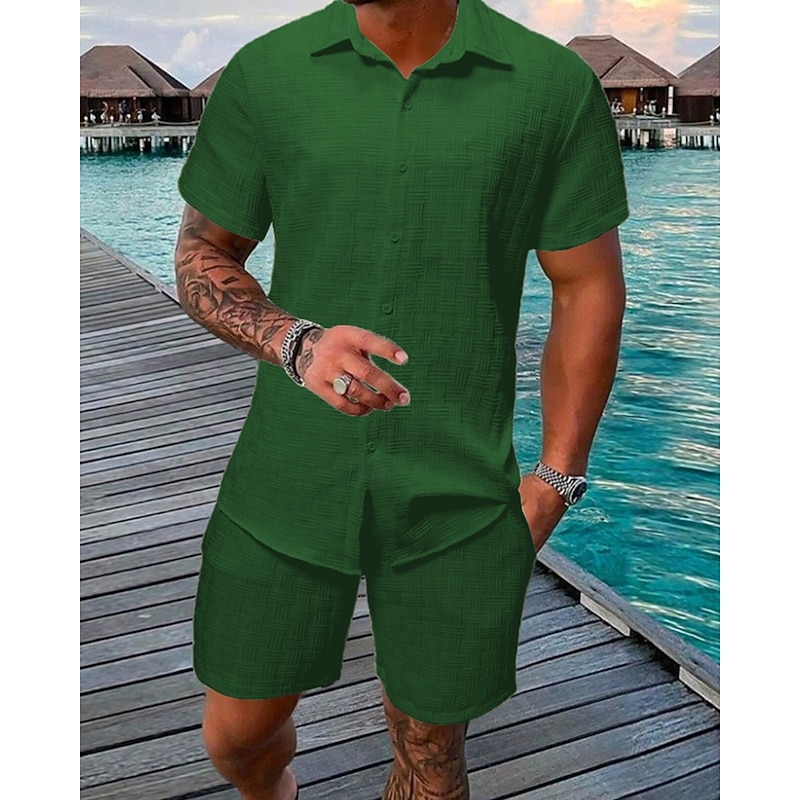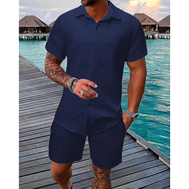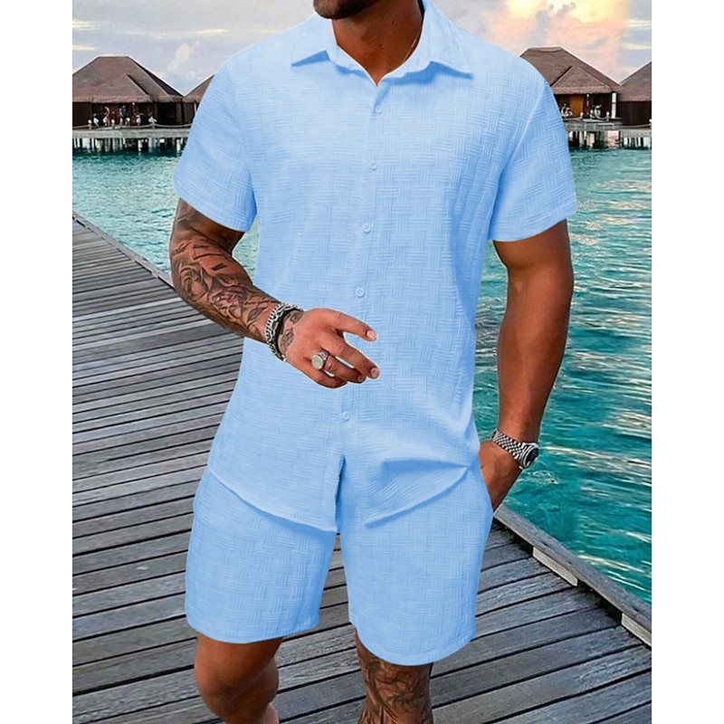 Highlights - Stay cool and stylish all summer long with this lightweight polyester outfit - Designed with short sleeves for a comfortable fit - Perfect for men looking for a casual yet put-together style - Complete 2 piece set for effortless outfit coordination - Ideal for vacations or casual outings - Features a classic shirt collar neckline for a sophisticated touch