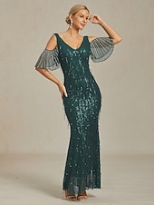 More information about Women's Maxi Dress Sheath Dress Elegant Party Birthday Solid Color Half Sleeve V Neck Green Summer