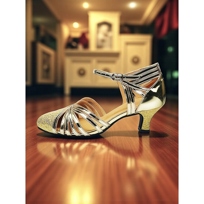 Women's Gold Glitter Dance Shoes with Low Heel - Professional Ballroom Latin Shoes for Performance and Party Wear 1