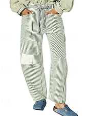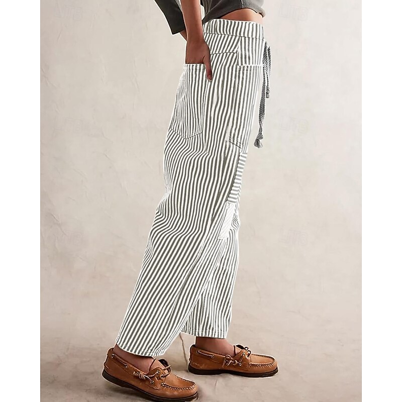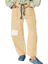 More information about Women's Slacks Straight Fashion Streetwear Full Length Natural Striped Pocket Elastic Drawstring Design Comfy Outdoor Street Daily Wear Magenta Grey Black Yellow Summer Regular Fit