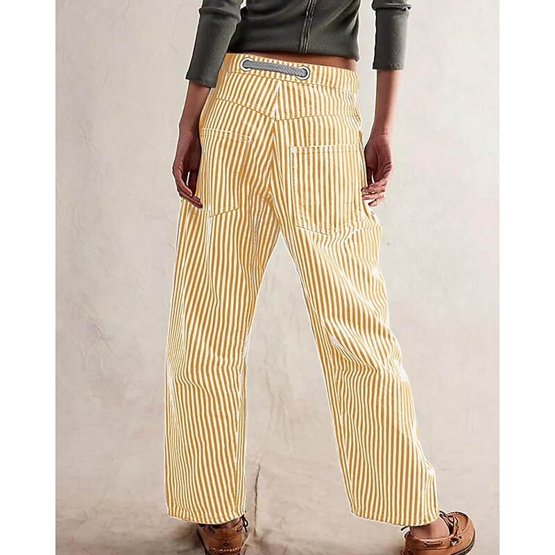 Women's Slacks Straight Fashion Streetwear Full Length Natural Striped Pocket Elastic Drawstring Design Comfy Outdoor Street Daily Wear Magenta Grey Black Yellow Summer Regular Fit 18