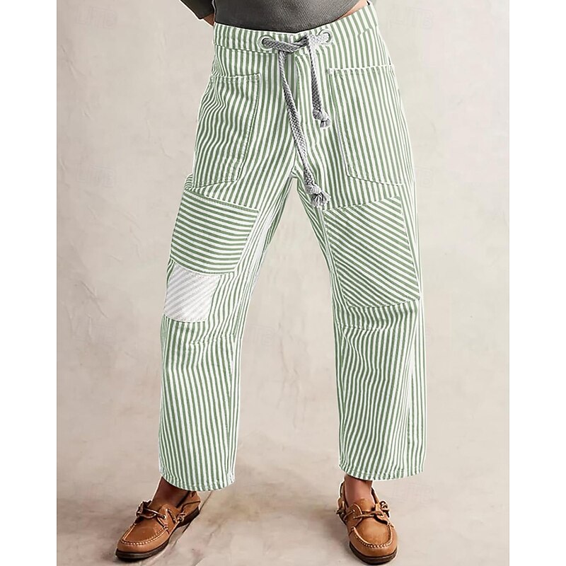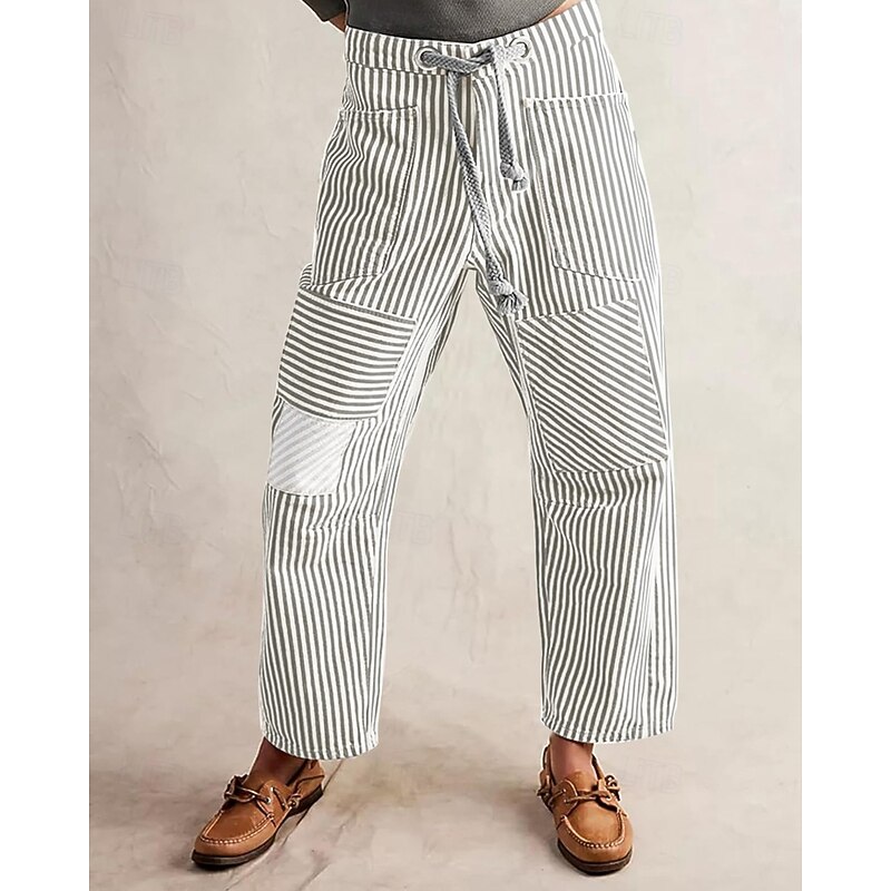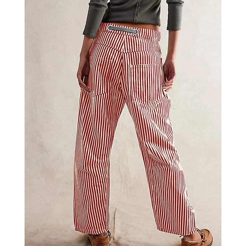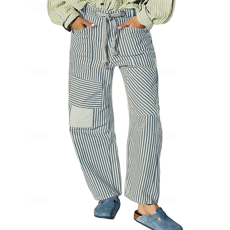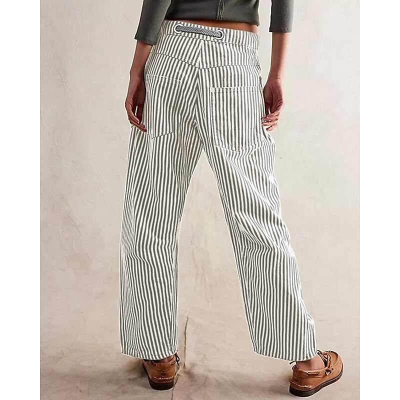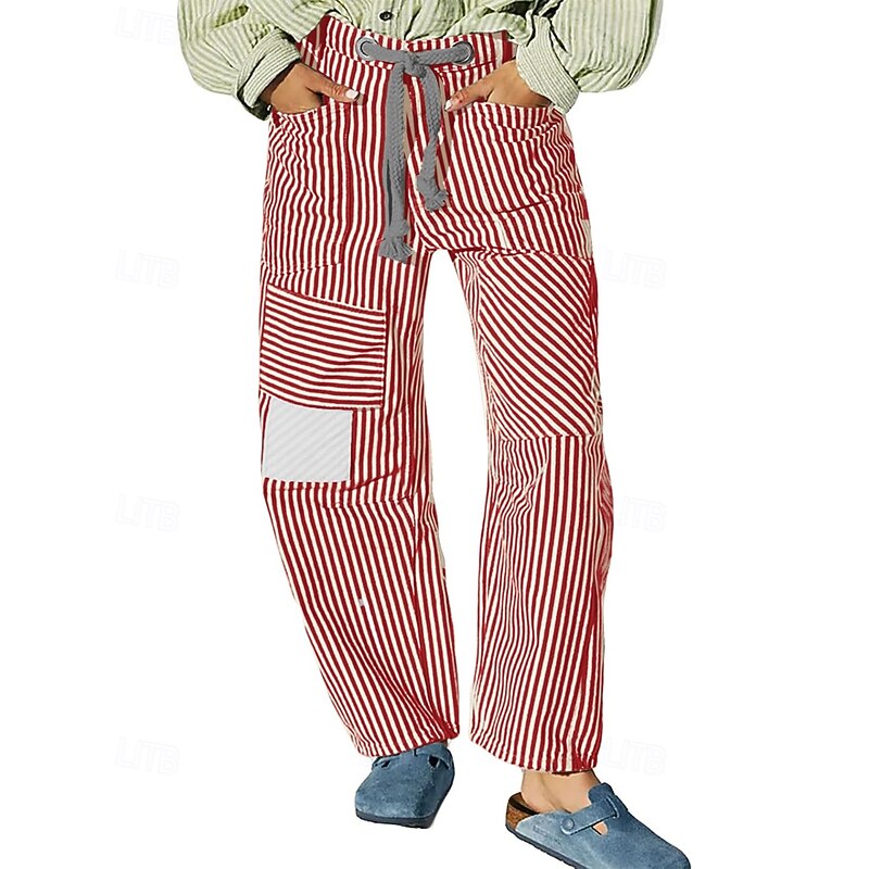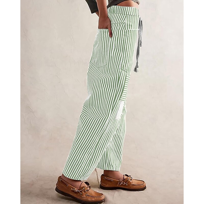 Women's Slacks Straight Fashion Streetwear Full Length Natural Striped Pocket Elastic Drawstring Design Comfy Outdoor Street Daily Wear Magenta Grey Black Yellow Summer Regular Fit 9