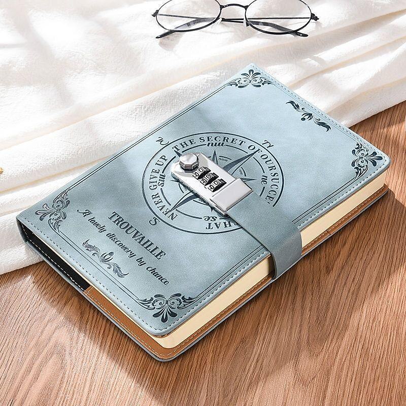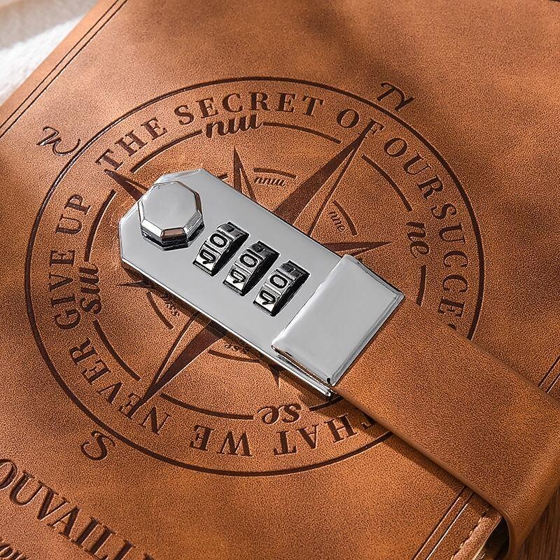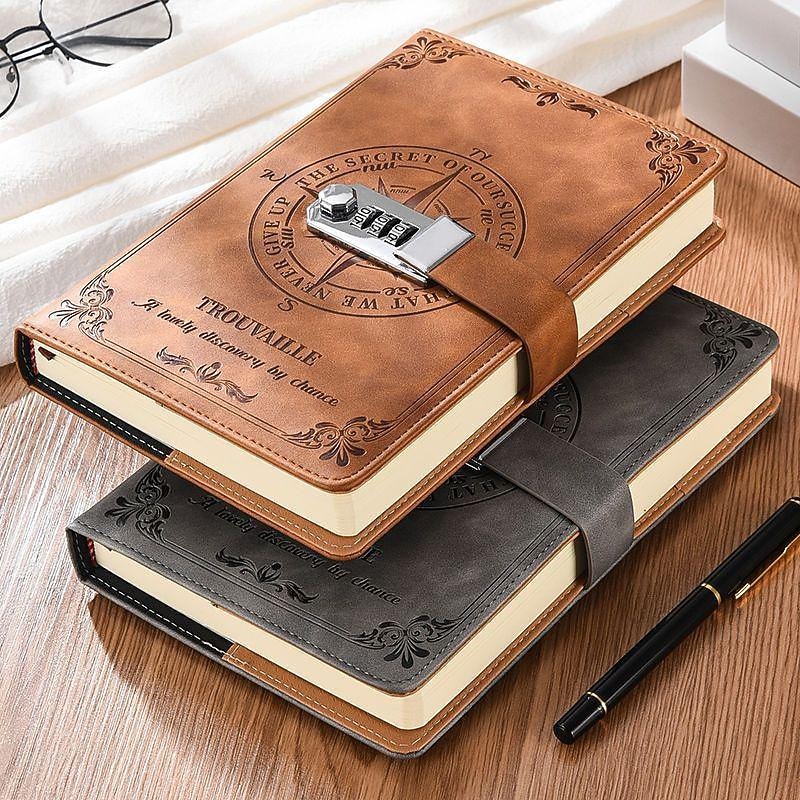 HOT ! A5 Leather Notebook with Lock, Password Diary Journal for College Students, Retro Handcrafted Thickened Paper, Back to School Gift, Stationery