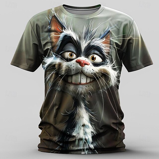 Highlights [Fabric] This Men's Graphic Cat T-shirt is crafted from high-quality polyester fabric, known for its durability and ability to maintain vibrant colors. The material is lightweight and breathable, making it ideal for spring and summer wear. [Fit] Featuring a classic crew neck and short sleeves, this T-shirt offers a regular fit that ensures comfort and versatility for casual occasions. Its micro-elastic nature allows for ease of movement, making it perfect for various activities. [Design Highlights] The shirt showcases a whimsical 3D print of a cartoon cat with an expressive grin, seamlessly integrated into the fabric to provide a sleek and modern look. This playful graphic design is perfect for those who wish to add a touch of humor to their wardrobe. [Occasions] Suitable for a variety of occasions, this T-shirt is perfect for sports, outdoor activities, holidays, and casual outings. Its retro vintage, street style makes it a standout piece that pairs effortlessly with jeans or shorts for a laid-back yet eye-catching ensemble. [Sizes] Available in a wide range of sizes from S to 3XL, this T-shirt caters to adults seeking a comfortable and stylish fashion choice.