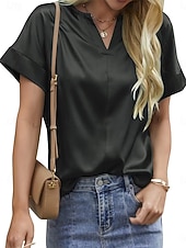 More information about Women's Shirt Elegant Dressy Satin Solid Color Elegant Stylish Casual Long Sleeve V Neck Regular Tops Wedding Guest Work Daily Black Light Brown Khaki Spring Fall Winter