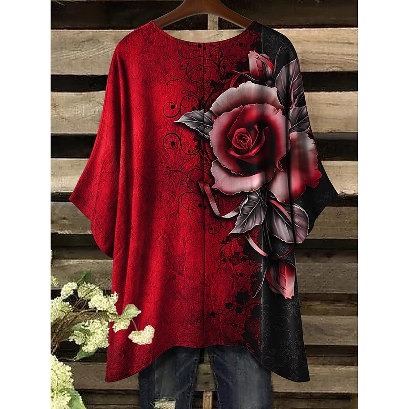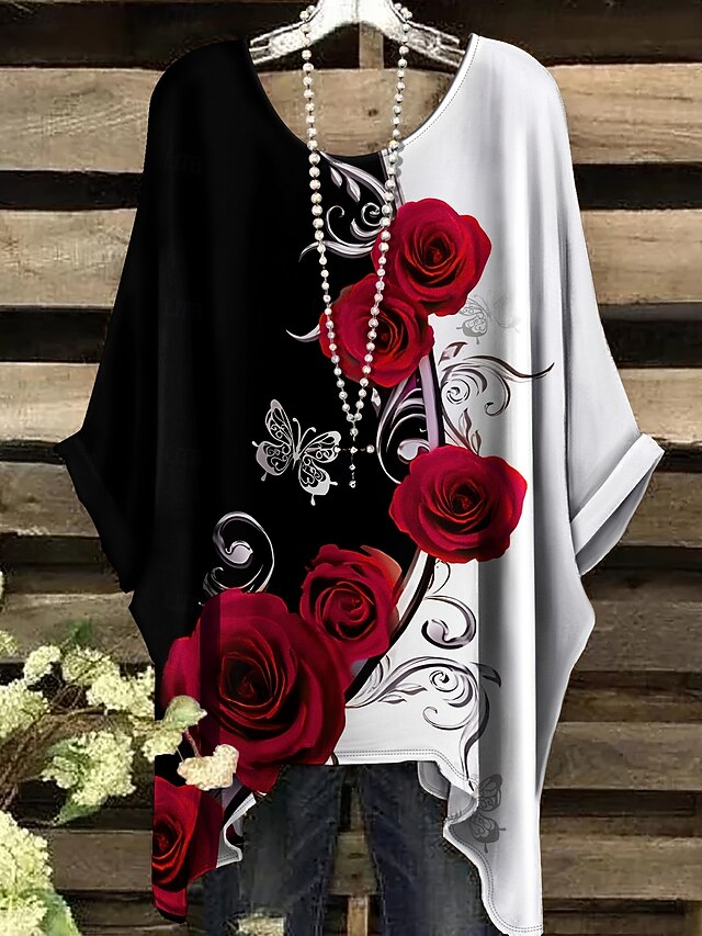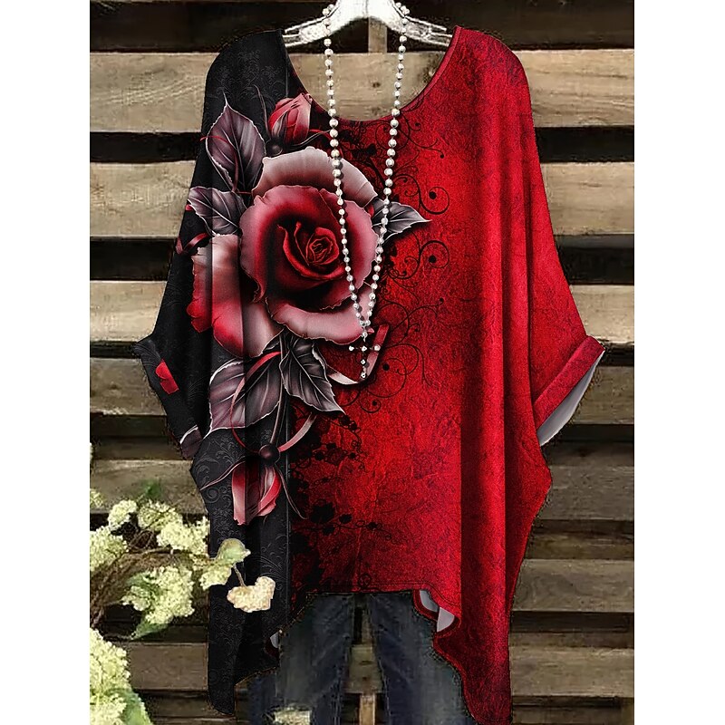 More information about Women's Blouse Floral Graphic Elegant Vintage Daily Half Sleeve Batwing Sleeve Crew Neck Regular Tops Daily Holiday Vacation Wear Black Pink Red Purple Summer Spring