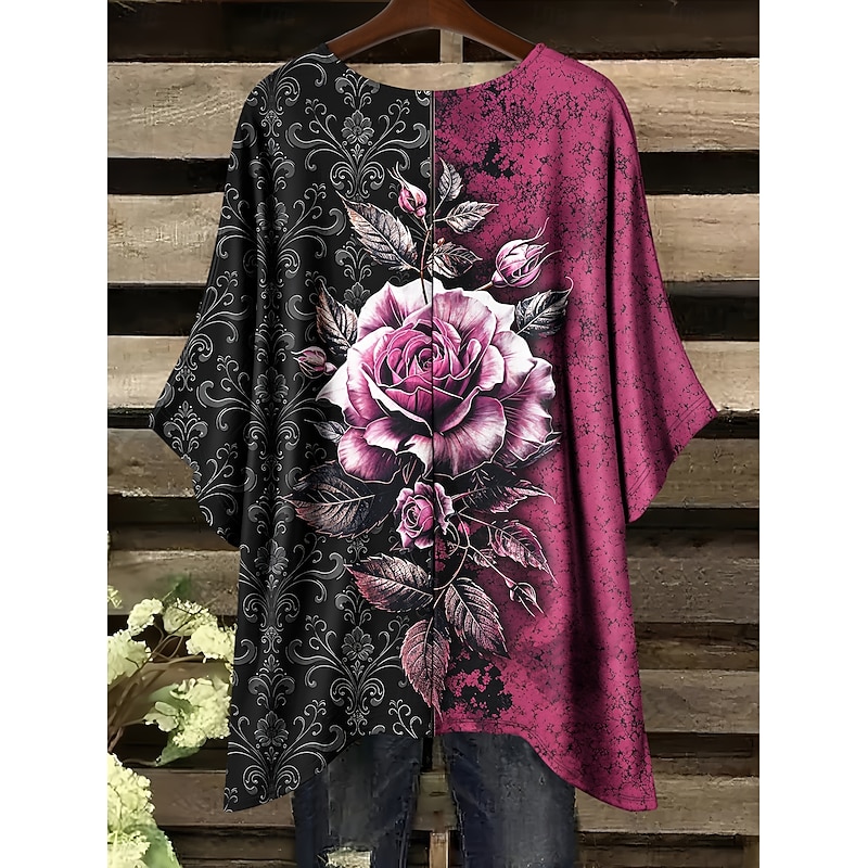 Women's Blouse Floral Graphic Elegant Vintage Daily Half Sleeve Batwing Sleeve Crew Neck Regular Tops Daily Holiday Vacation Wear Black Pink Red Purple Summer Spring 4
