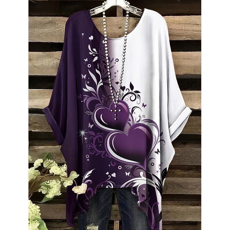HOT ! Women's Blouse Floral Graphic Elegant Vintage Daily Half Sleeve Batwing Sleeve Crew Neck Regular Tops Daily Holiday Vacation Wear Black Pink Red Purple Summer Spring
