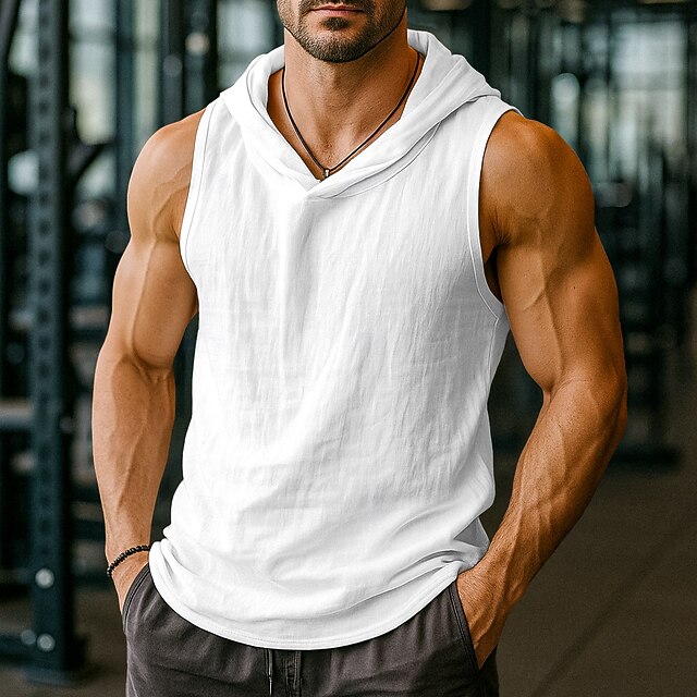 Men's Tank Top Henley Shirt Vest Top Undershirt Sleeveless Hooded Summer Plain Fashion Designer Sporty Hooded Outdoor Casual Going out White Top Tee for Men 9