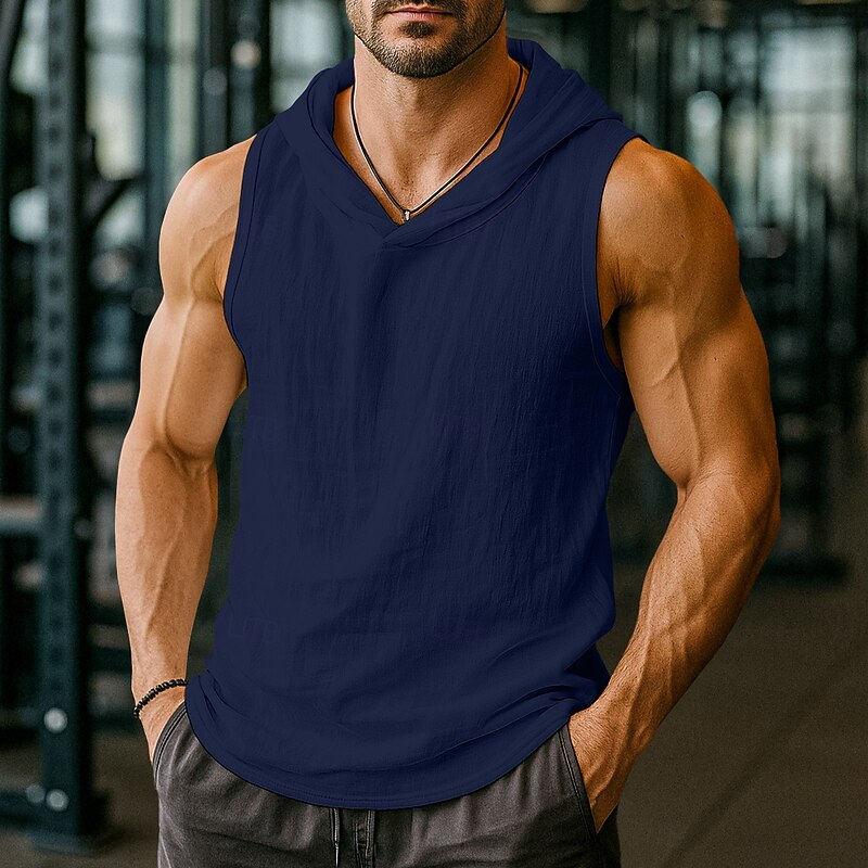 HOT ! Men's Tank Top Henley Shirt Vest Top Undershirt Sleeveless Hooded Summer Plain Fashion Designer Sporty Hooded Outdoor Casual Going out White Top Tee for Men