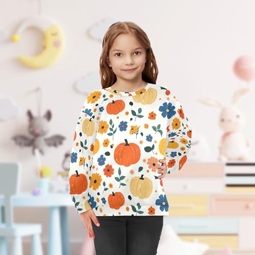 JUNZAN Autumn Pumpkins Flowers Retro Big Boys Pullover Hoodie Long Sleeve Kids Pullover Hoodie Camping 4T 5
