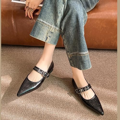 Women's Mary Jane Flats Shoes, Closed Pointed Toe Ballet Flat, Adjustable Buckle Dressy Comfortable Slip On Dress Shoes 6