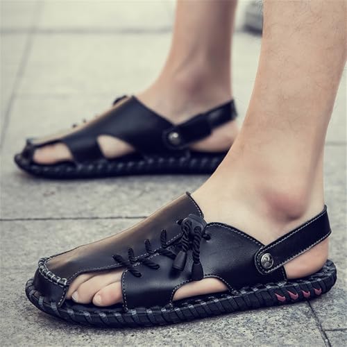 Mens Casual Closed Toe Leather Sandals Outdoor Fisherman Adjustable Summer Shoes 6