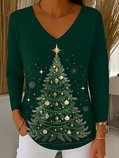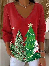 More information about Women's Sweater Casual Soft Christmas Tree Ribbed V Neck Knitted Print Long Sleeve Regular Tops Knit Outdoor Daily Weekend Black Light Green Fall Winter