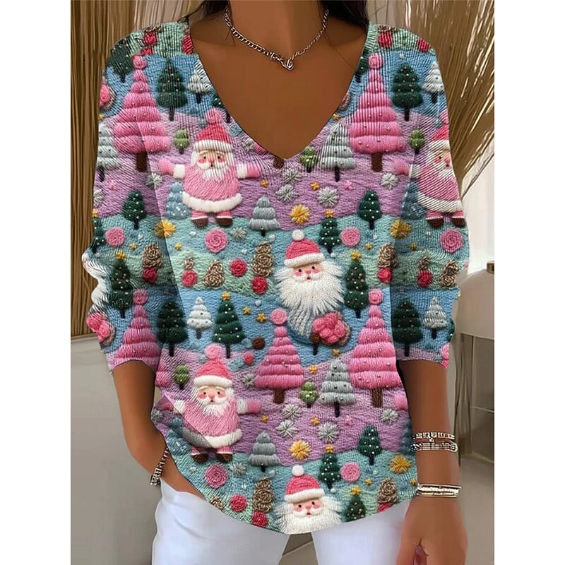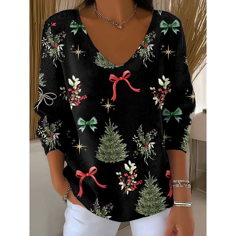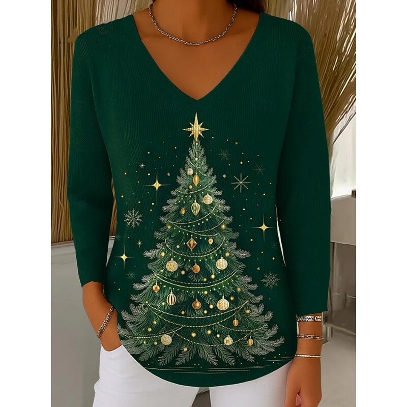 HOT ! Women's Sweater Casual Soft Christmas Tree Ribbed V Neck Knitted Print Long Sleeve Regular Tops Knit Outdoor Daily Weekend Black Light Green Fall Winter