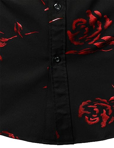 More information about ZEROYAA Mens Hipster Gold Rose Printed Slim Fit Short Sleeve Button Down Dress Shirts
