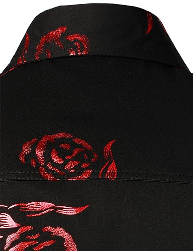 ZEROYAA Mens Hipster Gold Rose Printed Slim Fit Short Sleeve Button Down Dress Shirts 5