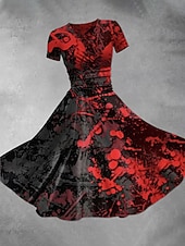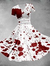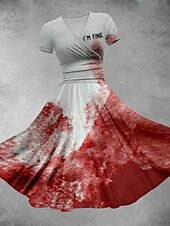 More information about Halloween Women's Bloodstain Print Midi Dress A Line Dress Summer Dress Fit And Flare Dress Party Casual Daily Holiday Regular Fit Graphic Abstract Short Sleeve V Neck White Red Gray Summer