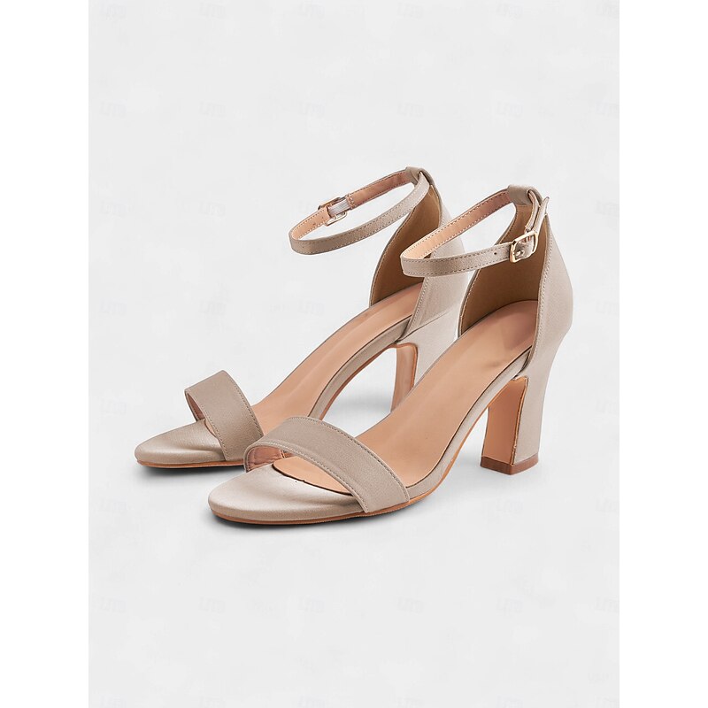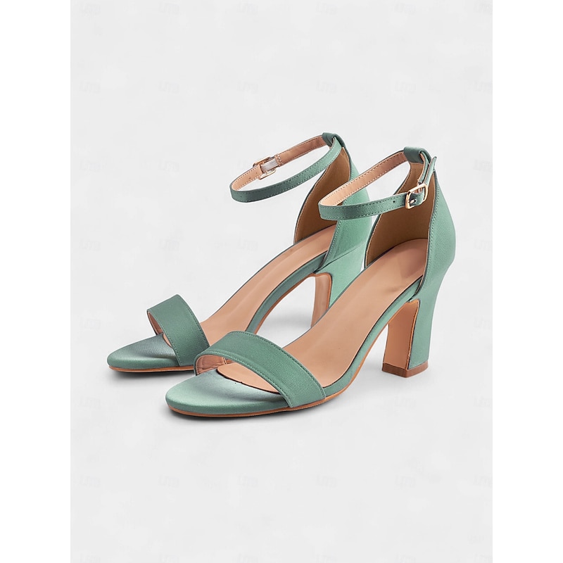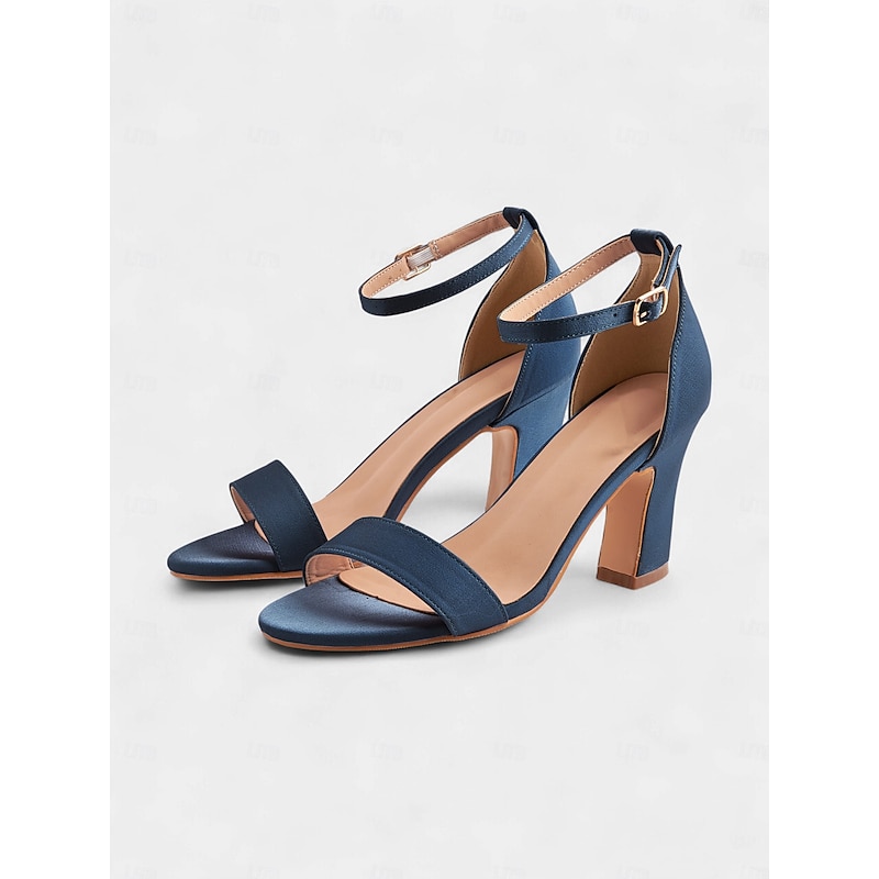 Highlights - Luxurious satin upper material - Soft synthetic leather lining for comfort - Stylish chunky heel for stability and height - Chic open toe design - Durable rubber outsole for long-lasting wear
