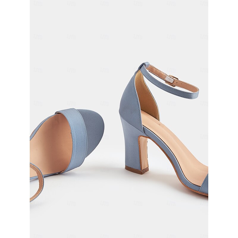 Women's Light Blue Ankle Strap High Heel Sandals - Open Toe Block Heels for Cocktail Parties and Evening Occasions 24