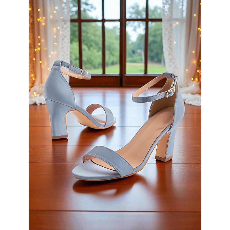 Women's Light Blue Ankle Strap High Heel Sandals - Open Toe Block Heels for Cocktail Parties and Evening Occasions 1