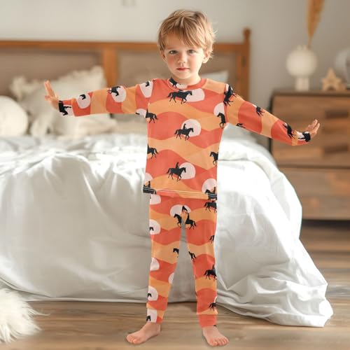 Pajama Sets Long Sleeve Horse Riders Waves Background Soft Comfy Sleepwear 2 Piece PJS 3-8T 1