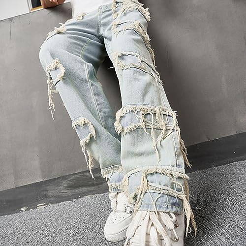 More information about Stacked Jeans Men, Y2k Slim Fit Skinny Ripped Jeans Men Distressed Destroyed Denim Pants Emo Hip Hop Stretch Trouser
