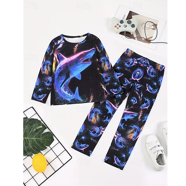 HOT ! Boys 3D Graphic Shark Pajama Sets Tee & Pants Pajama Sets Long Sleeve 3D Print Fall Winter Active Basic Kids 4 years+ Crew Neck Home Daily Regular Fit